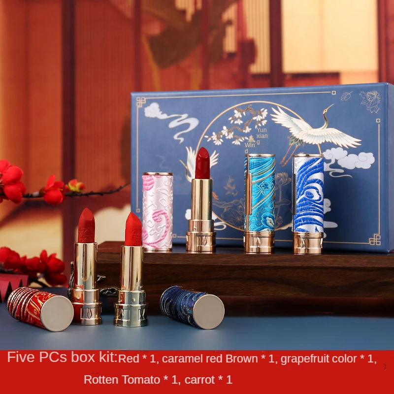 Oriental Classical Beauty Vintage Velvet Carved Lipstick Matte Pigmented Waterproof Lasting Lip Makeup Silky Touch Cosmetics